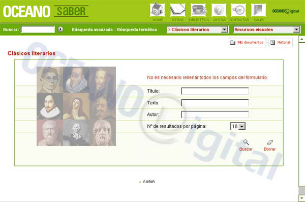 Among the improvements in utility of the Océano line of products, a new way to access the works contained in the section of literary classics in Océano Colegial has been developed. This includes a more dynamic presentation of the section, which allows regularly emphasizing and recommending authors.