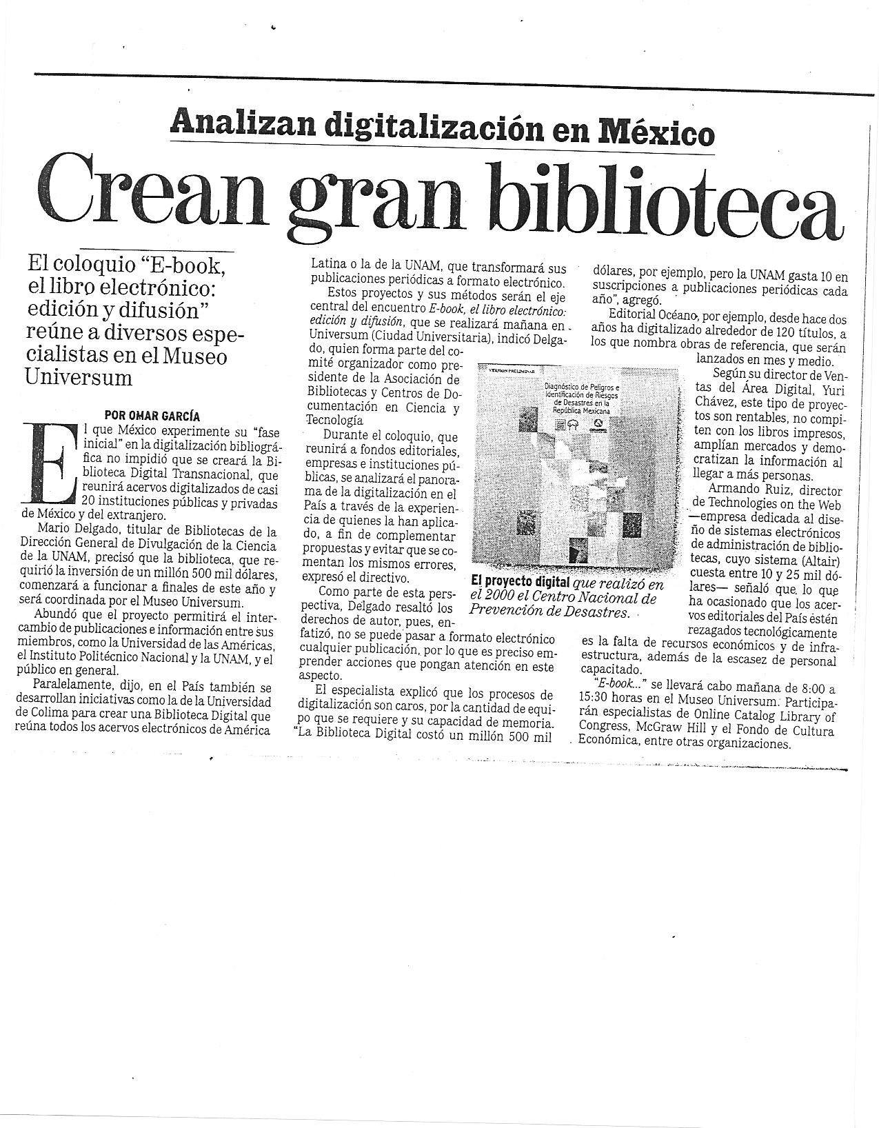 “For the past two years, Editorial Océano, for example, has prepared digital reproductions of about 120 titles, which they call reference works, that will be unveiled in the next month. According to Yuri Chávez, Director of Sales for Digital Media, these digital projects are profitable, do not compete with printed books, open more markets, and make information available to more people.”